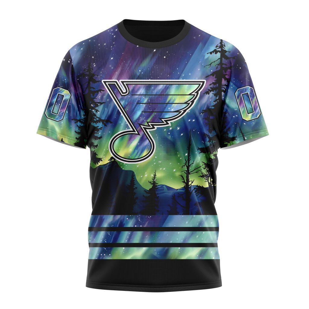 St. Louis Blues With Northern Lights 01 Personalized Name And Number T-Shirt