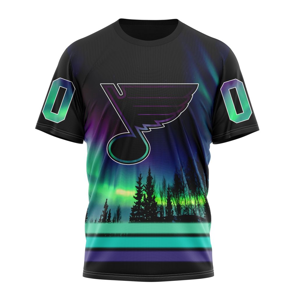 St. Louis Blues With Northern Lights Personalized Name And Number T-Shirt