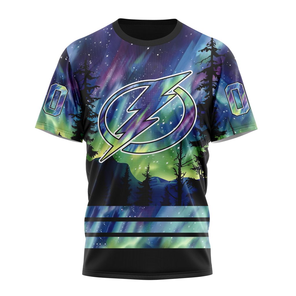 Tampa Bay Lightning With Northern Lights 01 Personalized Name And Number T-Shirt