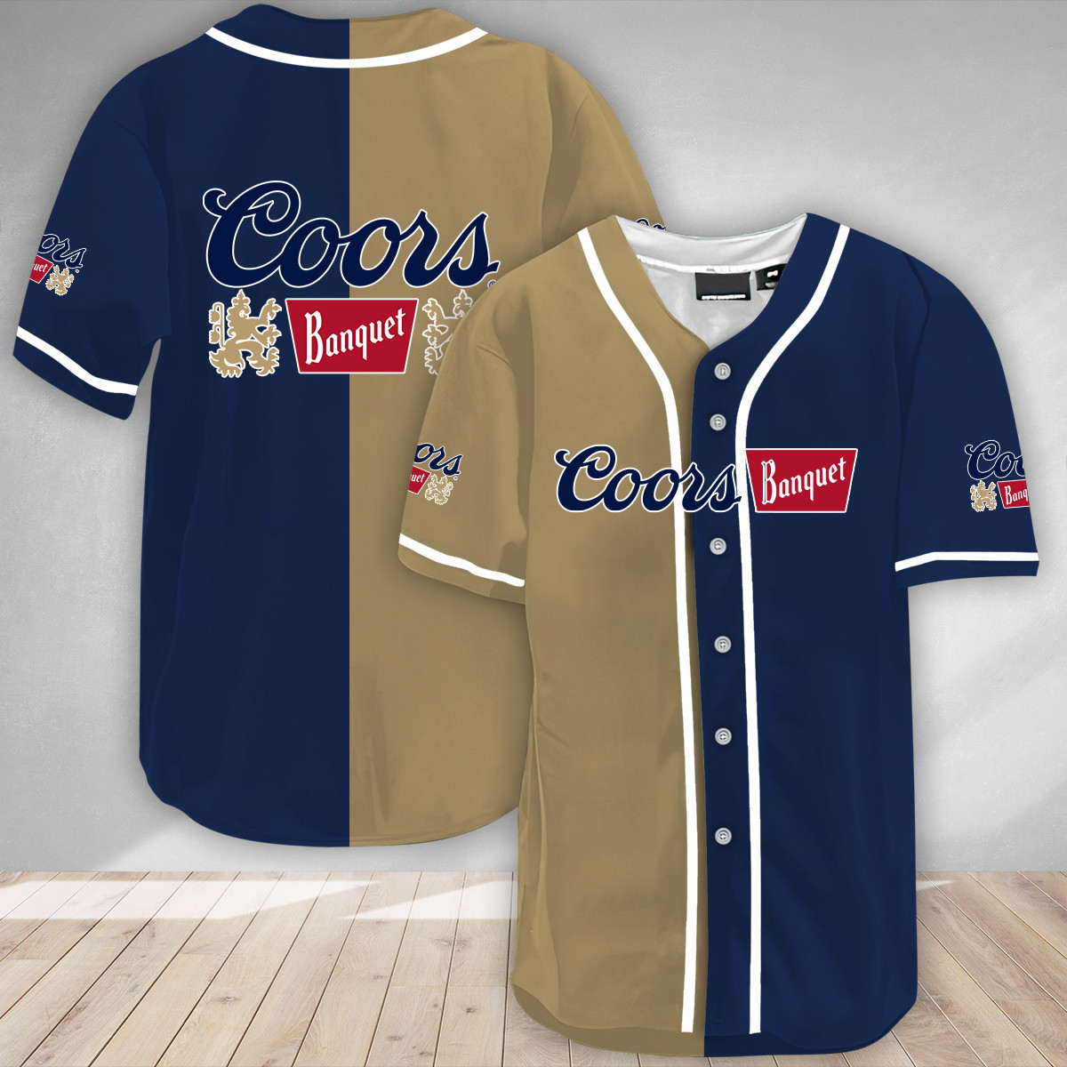 Tan And Navi Split Coors Banquet Baseball Jersey