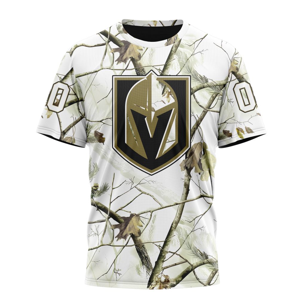 Vegas Golden Knights Special White Winter Hunting Camo Design Personalized Name And Number T-Shirt