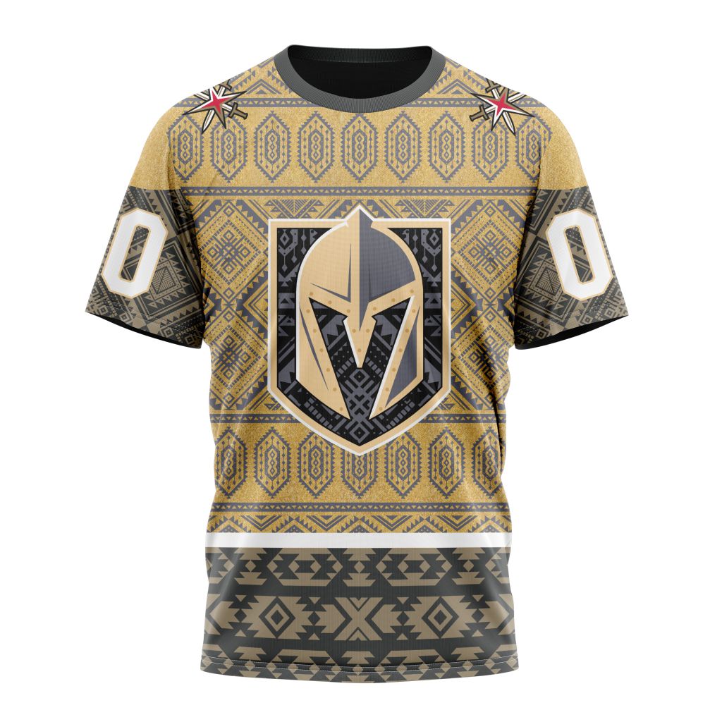 Vegas Golden Knights With Native Pattern Personalized Name And Number T-Shirt
