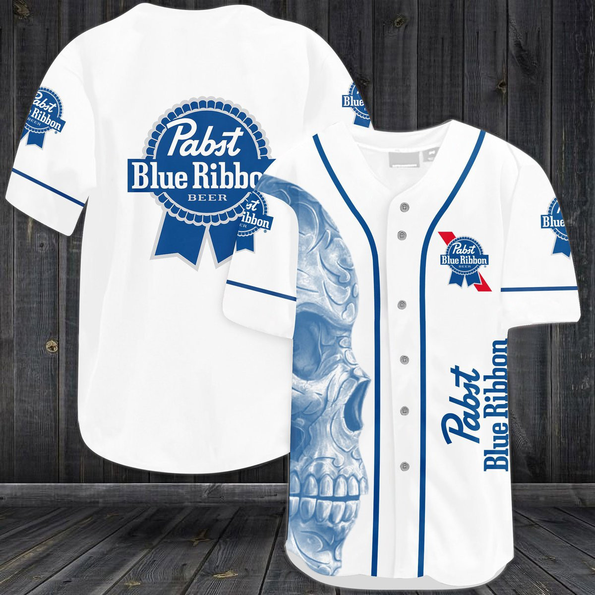 Vintage White Skull Pabst Blue Ribbon Baseball Jersey