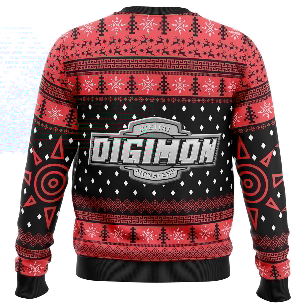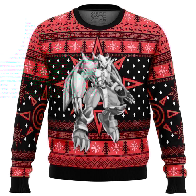 Buildercar – Wargreymon Digimon Ugly Christmas Sweater Turn Heads This Holiday with Anime Ape’s Exclusive Ugly Christmas Sweater
