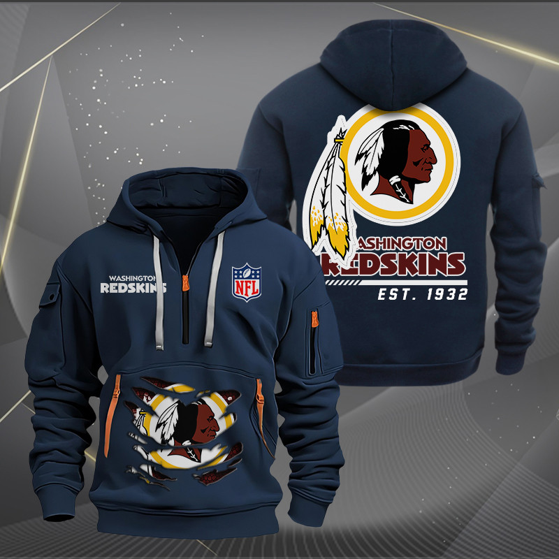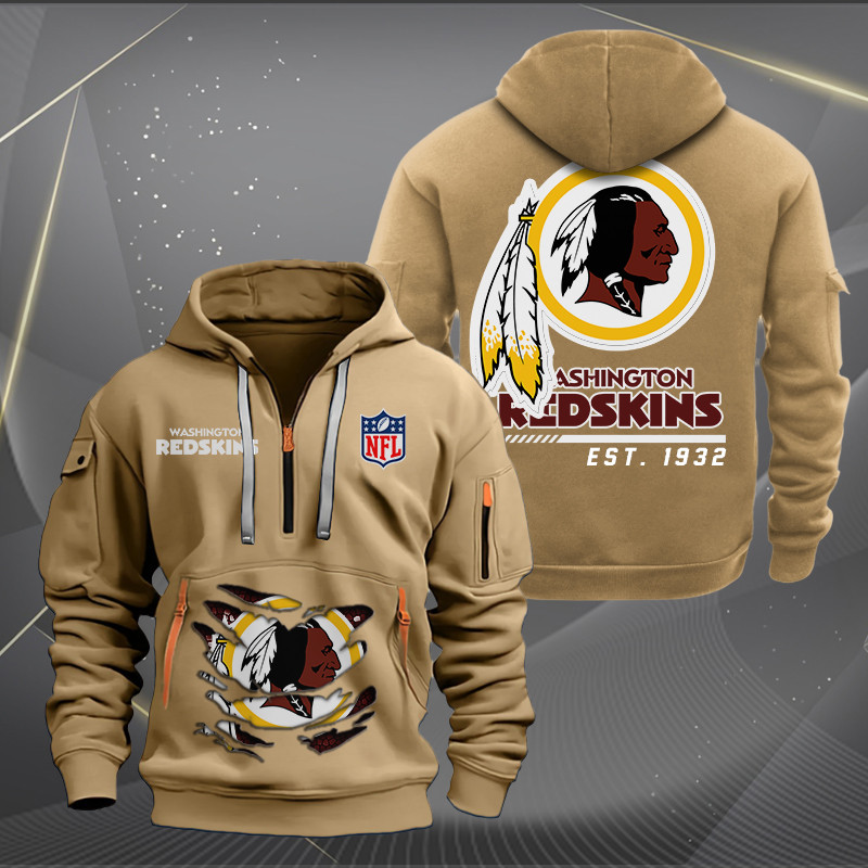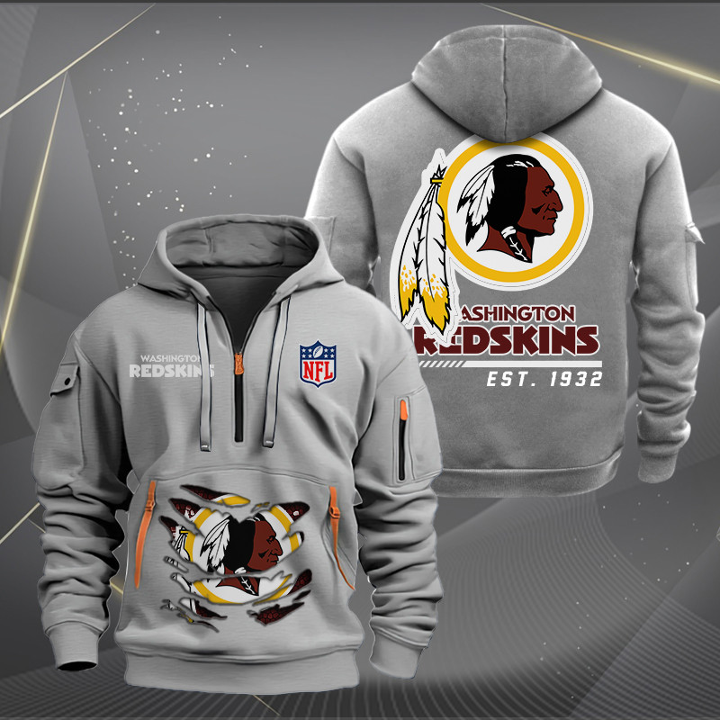 Washington Redskin Monster Scratch 2 Logo NFL Quarter Zip Hoodie