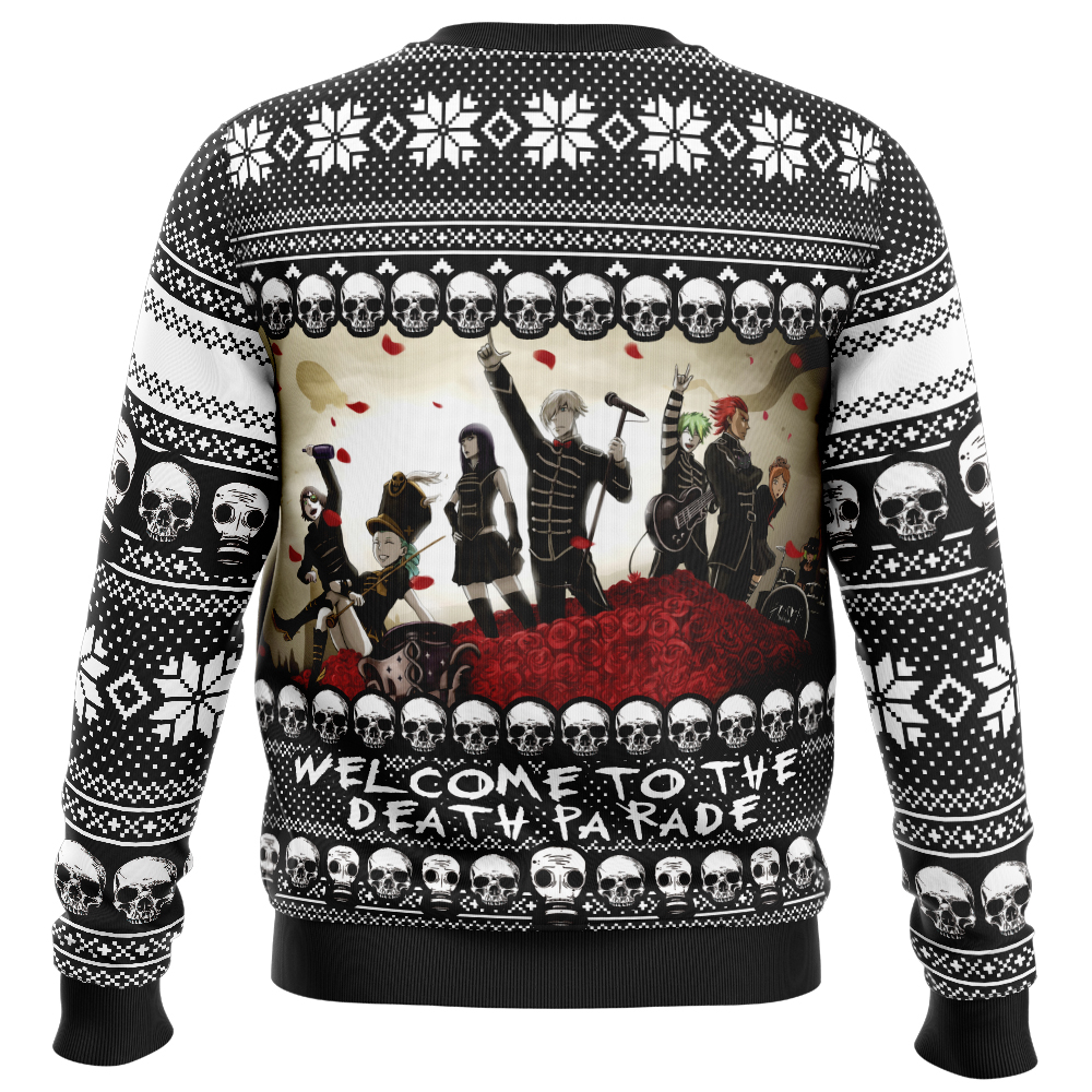 Buildercar – Welcome To The Death Parade Ugly Christmas Sweater Turn Heads This Holiday with Anime Ape’s Exclusive Ugly Christmas Sweater