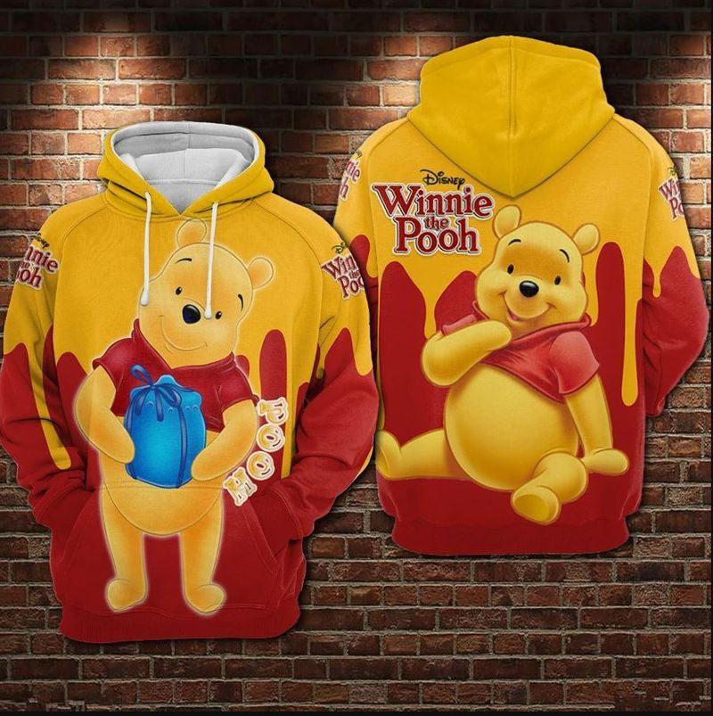 Buildercar – Winnie The Pooh Holding Honey Pot Red & Yellow Over Print 3d Hoodie