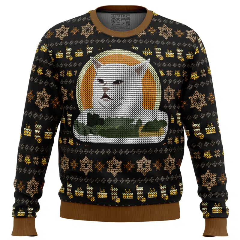 Buildercar – Woman Yelling At Cat Meme V2 Ugly Christmas Sweater Turn Heads This Holiday with Anime Ape’s Exclusive Ugly Christmas Sweater