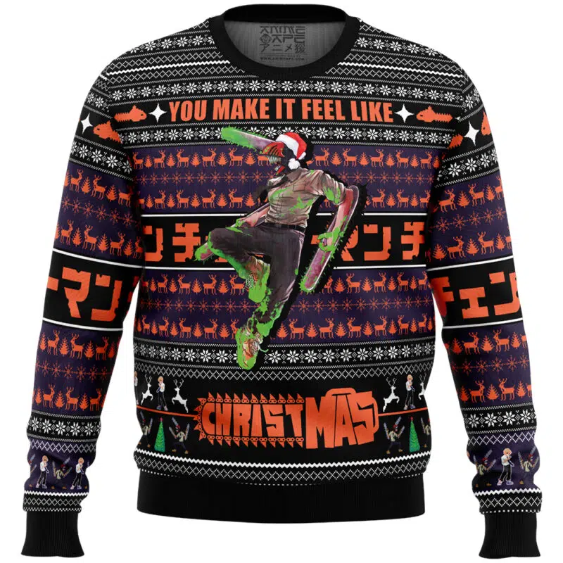 Buildercar – You Make It Feel Like Christmas Chainsaw Man Ugly Christmas Sweater