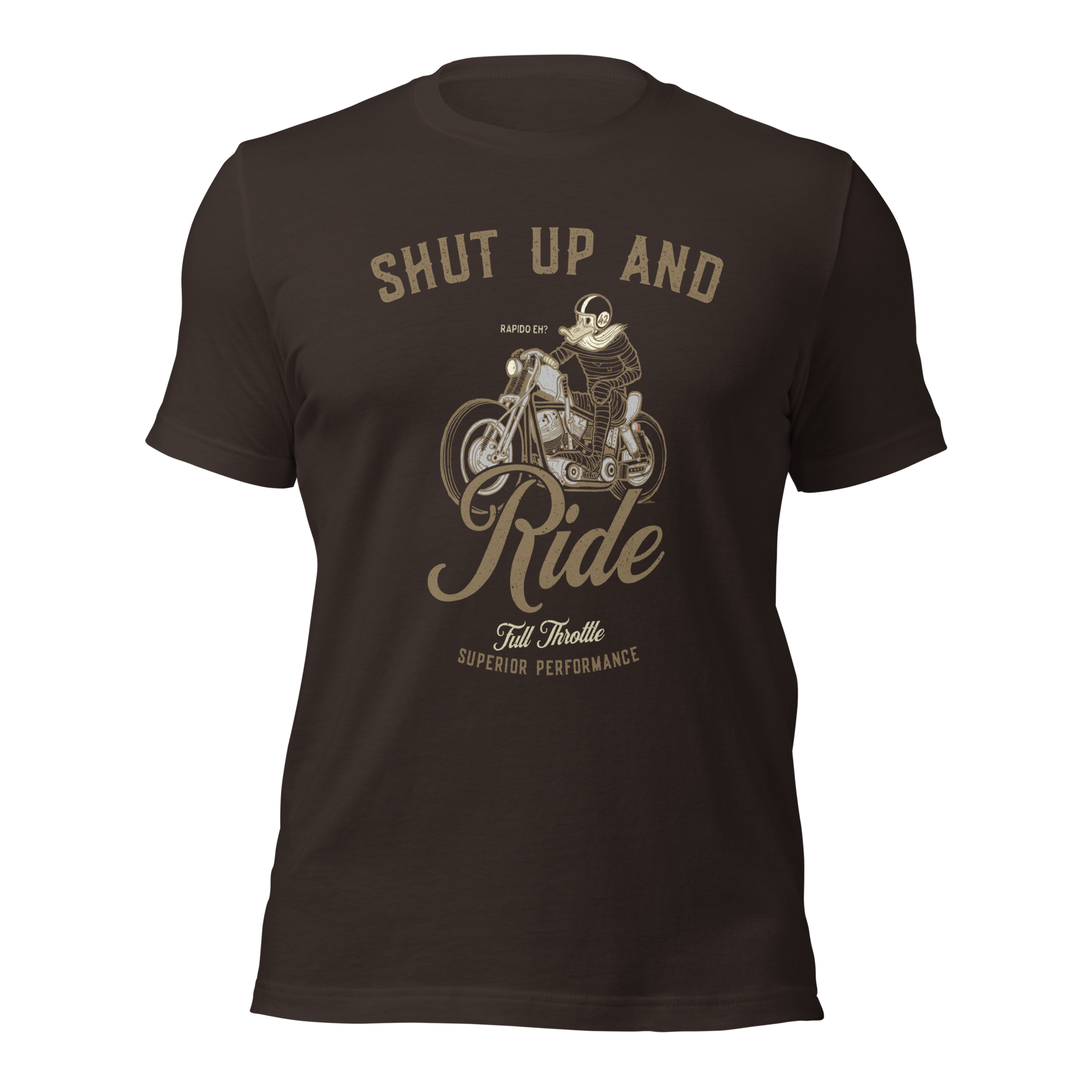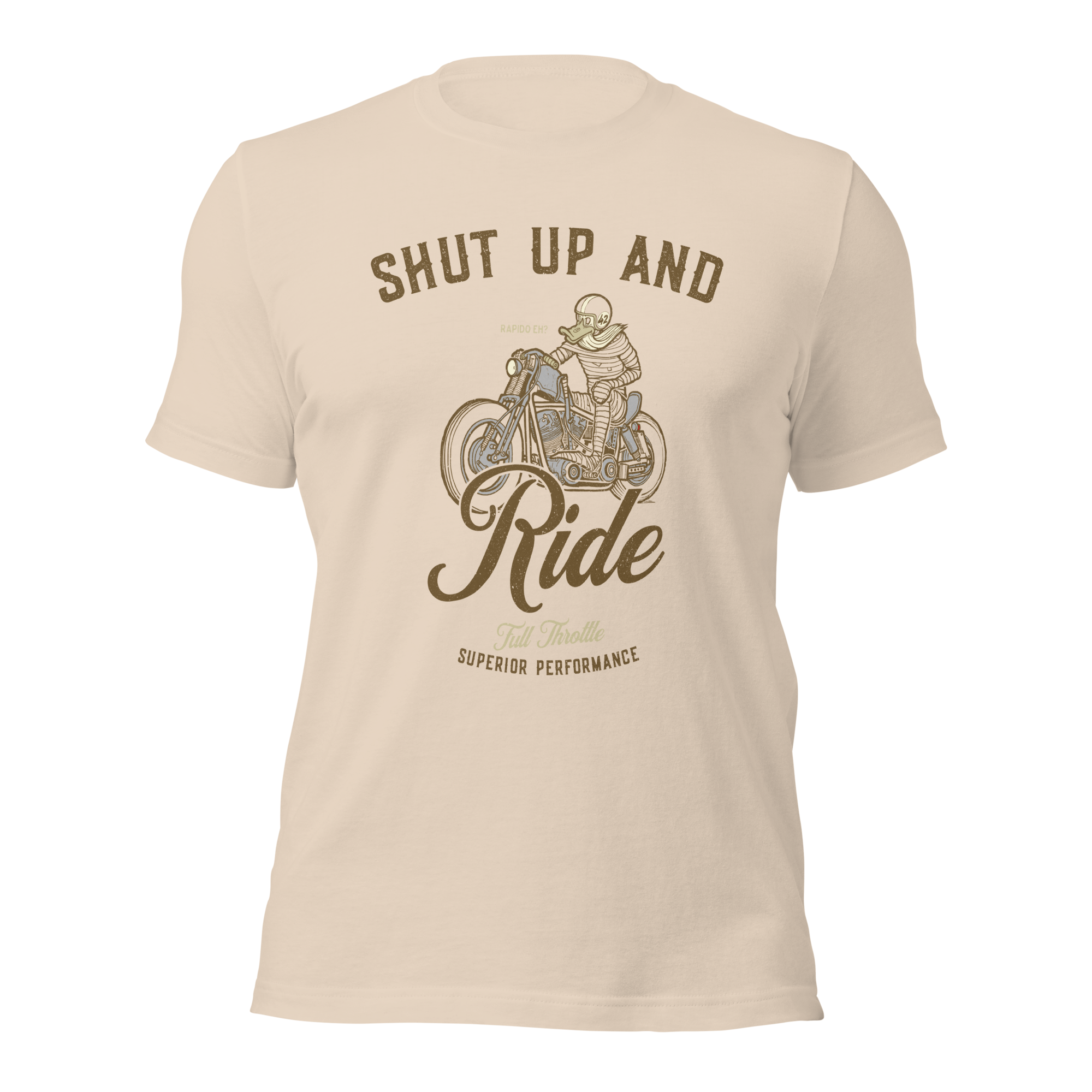 The Motorcycle Shirt featuring Shut Up And Ride is a must-have for any biker, merging style and attitude into one iconic design. Whether you’re looking for unique Motorcycle Gifts or expanding your own collection, this shirt is the ideal choice. It captures the spirit of the open road and the thrill of the ride, making it a standout piece in any wardrobe. Size guide LENGTH (inches) WIDTH (inches) CHEST (inches) XS 27 16 ½ 31-34 S 28 18 34-37 M 29 20 38-41 L 30 22 42-45 XL 31 24 46-49 2XL 32 26 50-53 3XL 33 28 54-57 4XL 34 30 58-61 5XL 35 31 62-65 LENGTH (cm) WIDTH (cm) CHEST (cm) XS 68.6 42 78.7-86.4 S 71.1 45.7 86.4-94 M 73.7 50.8 96.5-104.1 L 76.2 55.9 106.7-114.3 XL 78.7 61 116.8-124.5 2XL 81.3 66 127-134.6 3XL 83.8 71.1 137.2-144.8 4XL 86.4 76.2 147.3-155 5XL 89 78.7 157.5-165 Age restrictions: For adults EU Warranty: 2 years In compliance with the General Product Safety Regulation (GPSR), Mummyduck Customs ensures that all consumer products offered are safe and meet EU standards. For any product safety related inquiries or concerns, please contact us at [email protected] or write to us Särkiniementie 5, 00200 Helsinki, Finland.
