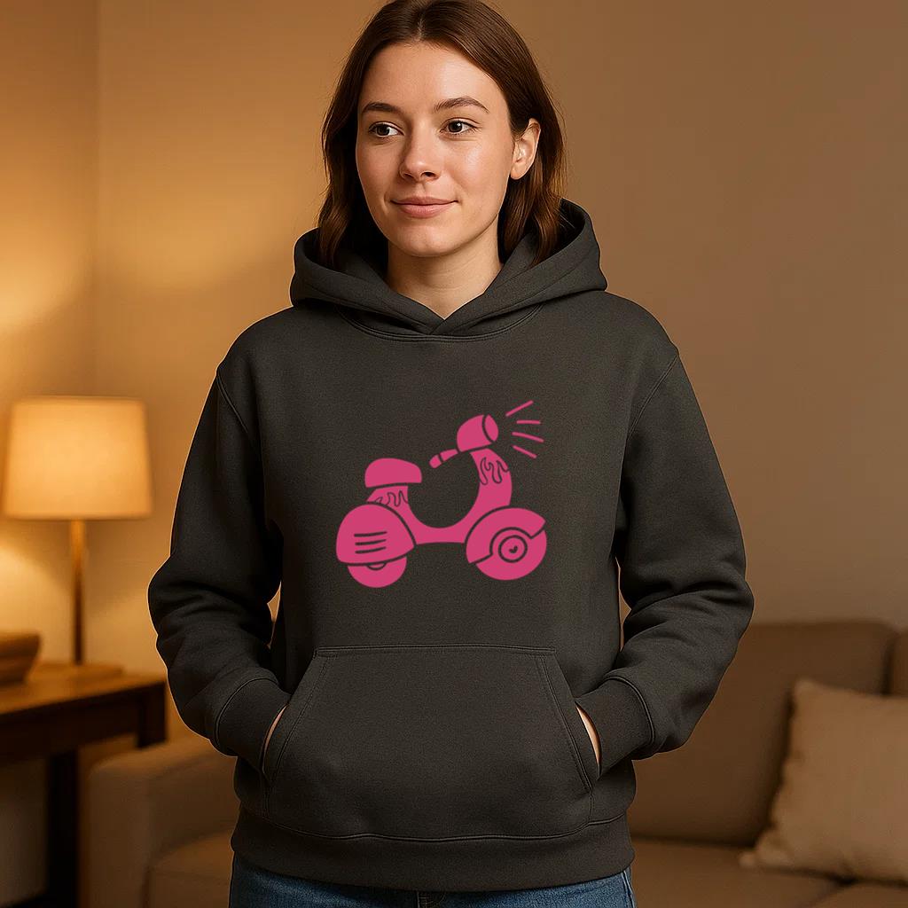 Soft, warm, and made to move with you, this Vibrant Pink Scooter Illustration Hoodie hoodie is your new everyday essential or go-to gift.