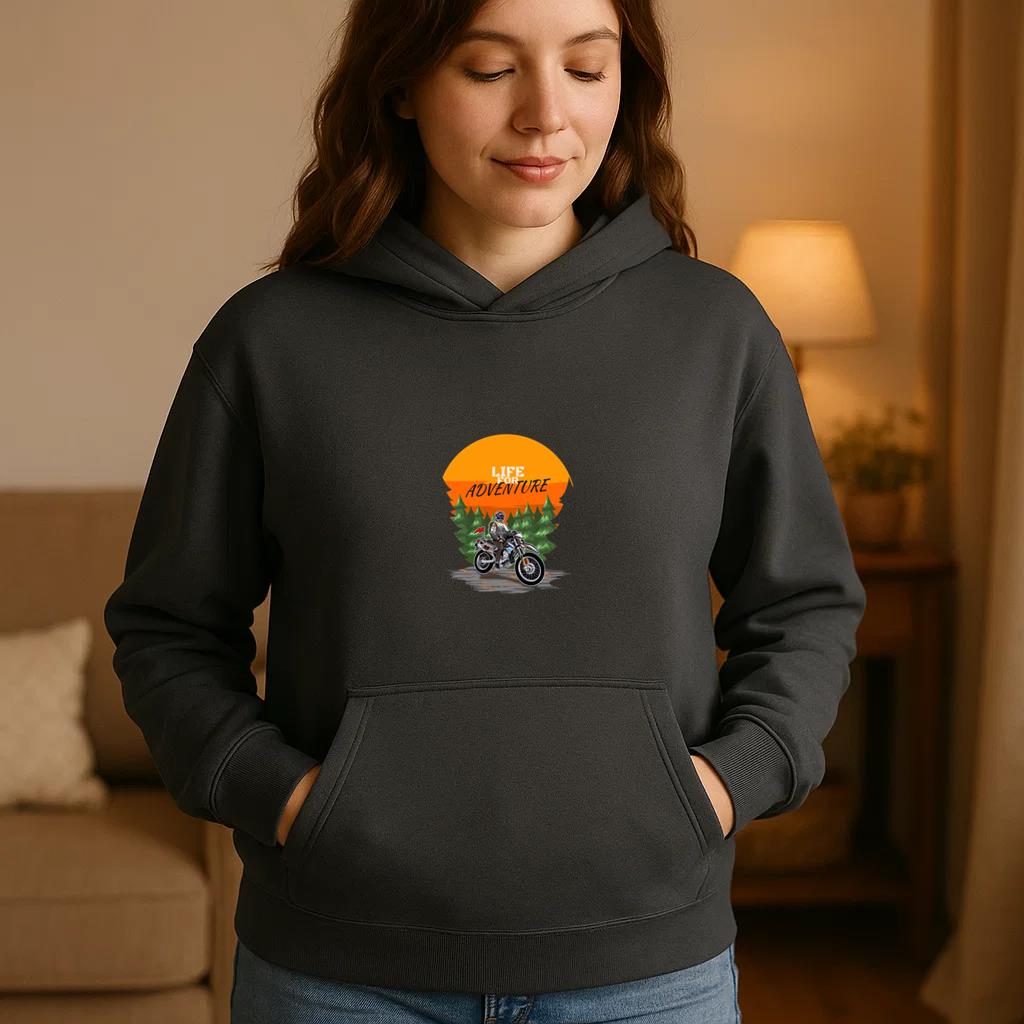 Soft, warm, and made to move with you, this Woman Motorbike Joyful Classic Hoodie hoodie is your new everyday essential or go-to gift.